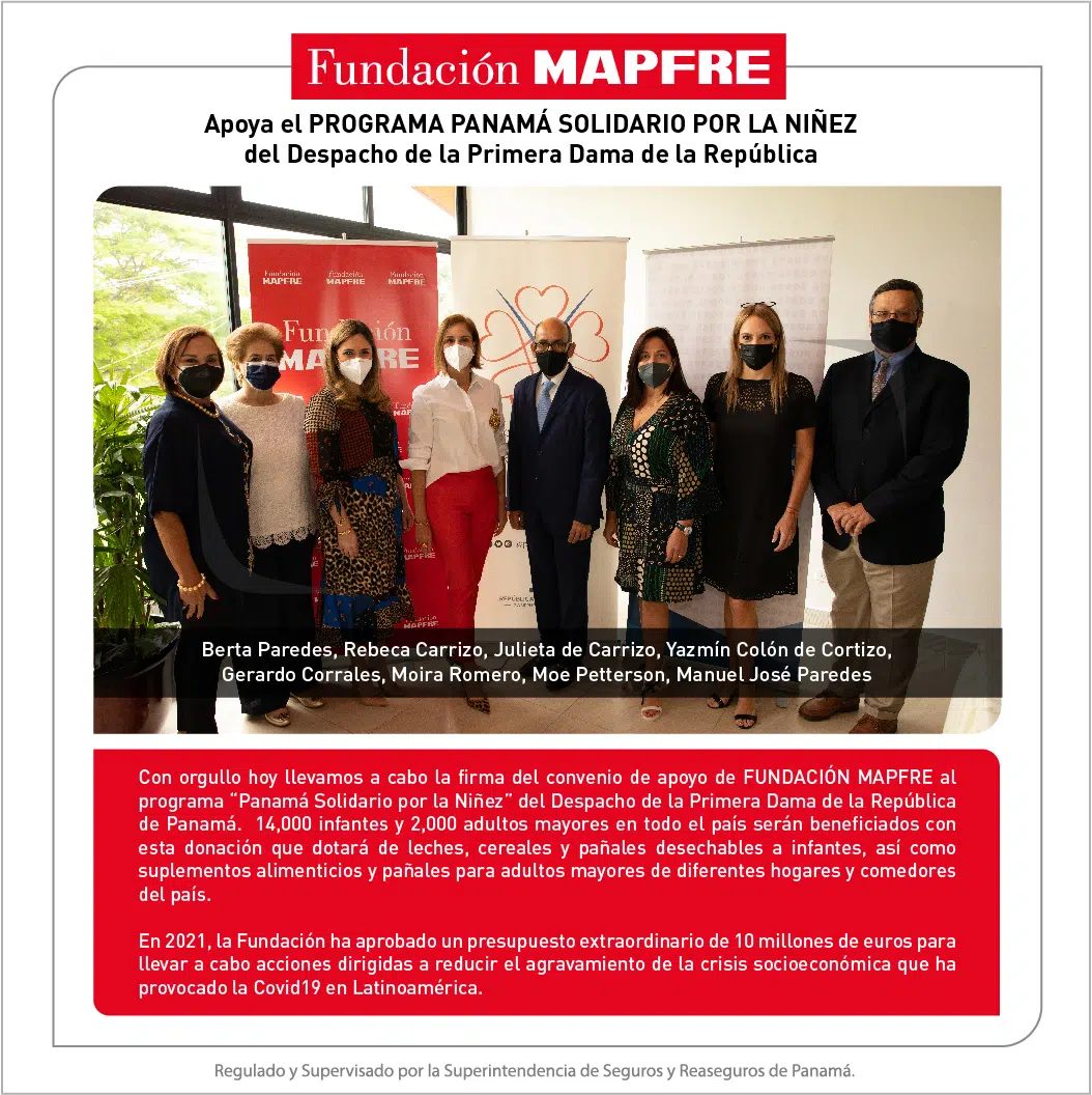 Fundación MAPFRE ha respaldado el proyecto Panamá Solidario por la Niñez con el objetivo de aportar alimentación y nutrición a menores de entre 0 y 8 años y a hogares de adultos mayores que viven en condiciones de pobreza y han sido duramente afectados por la pandemia de COVID-19.