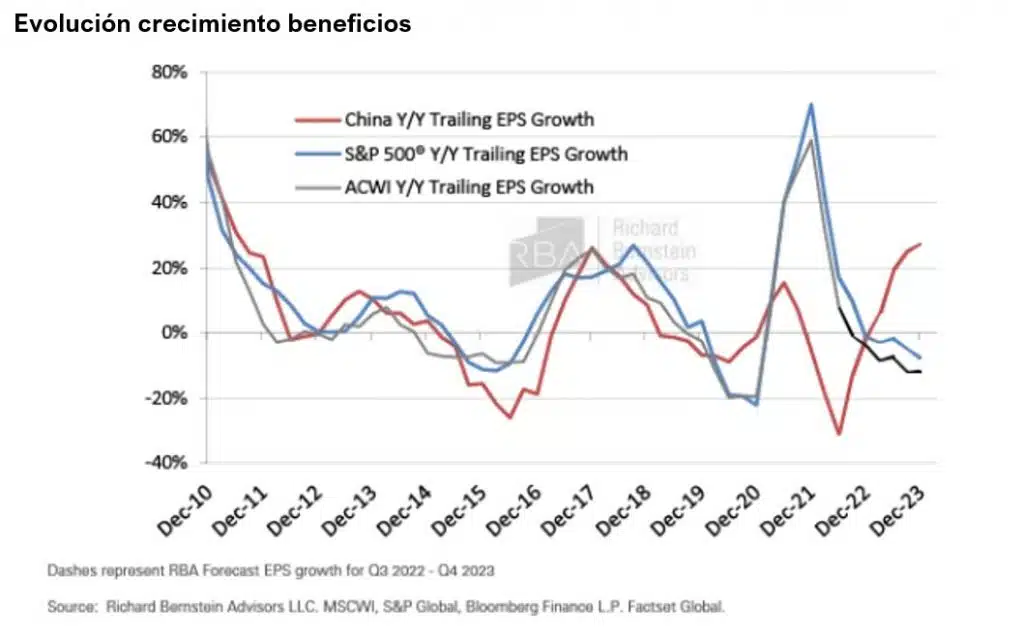 En términos de flujos, las salidas de capitales de las bolsas chinas continúan debido principalmente a las ventas de inversores extranjeros (se estima que un 80% del total) mientras que los inversores locales son compradores netos. Hay que destacar que los fundamentales de las compañías chinas siguen siendo bastante resilientes y las ventas se están produciendo de forma indiscriminada generando así una oportunidad de inversión si se tiene la paciencia debida. El sentimiento sigue siendo muy negativo pero la economía china se dirige hacia una normalización en actividades como el consumo, la inversión o los servicios tras verse muy afectada por los confinamientos, la implementación de nuevas regulaciones puede continuar pero probablemente el periodo más severo haya quedado atrás y no cuentan con el problema de inflación que tenemos en Occidente.