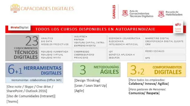 Por ello, MAPFRE ha ampliado su catálogo en Conocimientos, Metodologías, Herramientas y Comportamientos digitales y, durante esta fase de confinamiento, está haciendo especial hincapié en cada una de estas materias.