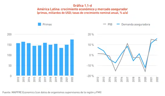 El mercado asegurador latinoamericano crece el 15,9% en 2022 hasta los 173.674 millones de dólares