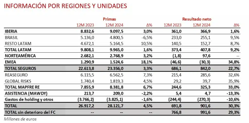 MAPFRE S.A. advierte que, salvo indicación contraria, las cifras y ratios que contiene este informe de actividad están presentadas bajo los principios contables vigentes en cada país, homogenizados para permitir la comparación y agregación entre unidades y regiones. Para ello se han aplicado ciertos ajustes, siendo los más relevantes los siguientes: la eliminación de la amortización de Fondo de Comercio en España y la eliminación de las reservas catastróficas en algunos países de Latinoamérica. En Malta y Portugal la contabilidad local aplica las NIIF 17 & 9. Pueden consultar las definiciones y métodos de cálculo de medidas financieras utilizadas en el presente informe bajo las NIIF 17&9 en el siguiente enlace: https://finance-legend.work/media/accionistas/2024/2024-12-medidas-alternativas-rendimiento.pdf%3C/em%3E%3C/a%3E%3C/p%3E%3C/div%3E%3C/div%3E%3Cdiv class="et_pb_module et_pb_text et_pb_text_5 et_pb_text_align_justified et_pb_bg_layout_light">