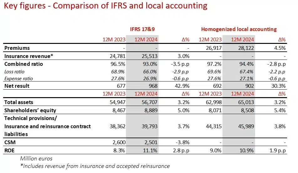 Mapfre S.A. hereby informs that, unless otherwise indicated, the figures and ratios in this activity report are presented under the accounting principles in force in each country, homogenized for comparison and aggregation between units and regions. As such, certain adjustments have been applied, the most relevant of which are the following: the elimination of the goodwill amortization in Spain and the elimination of catastrophic reserves in some Latin American countries. In Malta and Portugal, the applicable local accounting is IFRS 17 & 9. Definitions and calculation methodology for financial measures under IFRS 17&9 used in this report are available at the following link: https://finance-legend.work/media/2025/10/2024-12-alternate-performance-measures.pdf%3C/em%3E%3C/a%3E%3C/p%3E%3Col%3E%3Cli%3E%3Cstrong%3E IFRS ACCOUNTING