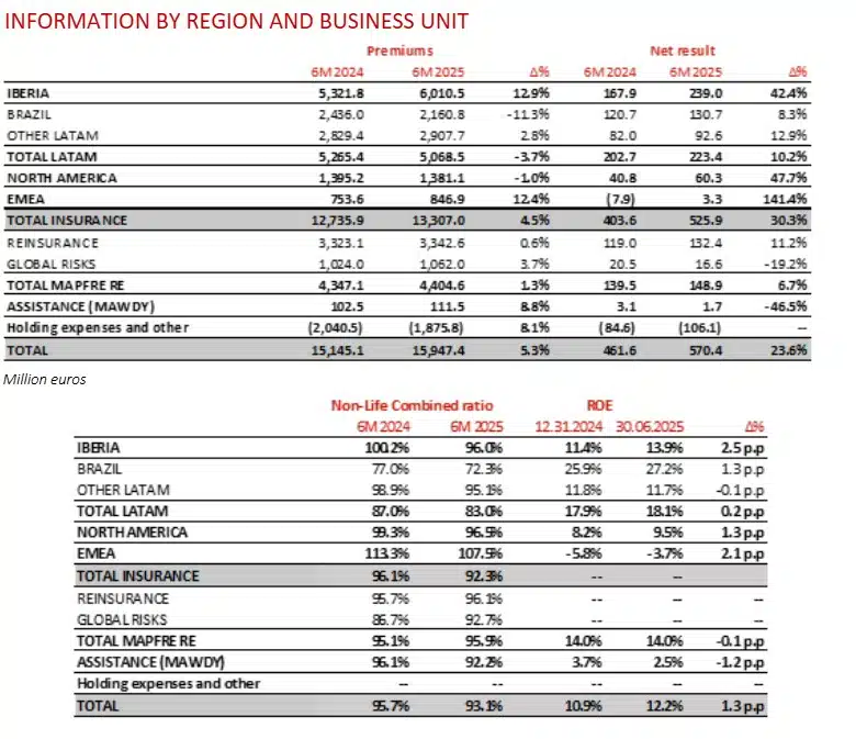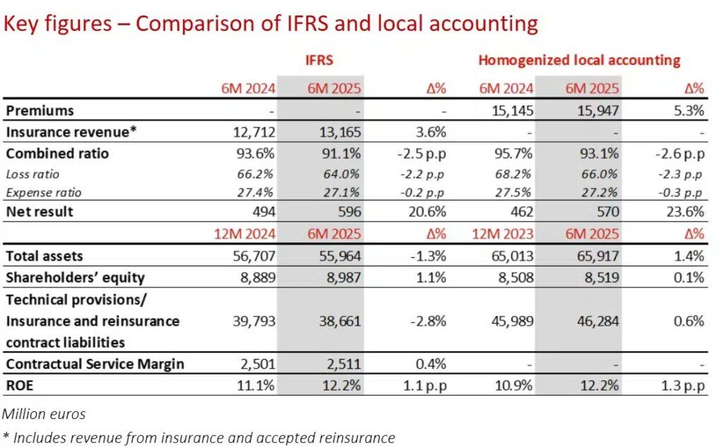Mapfre S.A. hereby informs that, unless otherwise indicated, the figures and ratios in this activity report are presented under the accounting principles in force in each country (which generally do not apply IFRS 17 & 9), homogenized for comparison and aggregation between units and regions. As such, certain adjustments have been applied, the most relevant being: the elimination of the goodwill amortization in Spain and the elimination of catastrophic reserves in some Latin American countries. Mapfre Group presents its financial statements under the applicable international accounting standards (IFRS). Definitions and calculation methodology for financial measures under IFRS used in this report are available at the following link: https://finance-legend.work/media/2025-06-alternative-performance-measures.pdf%3C/span%3E%3C/span%3E%3C/a%3E%3Cspan xml_lang="EN-US" lang="EN-US" class="TextRun EmptyTextRun SCXW249308800 BCX8">