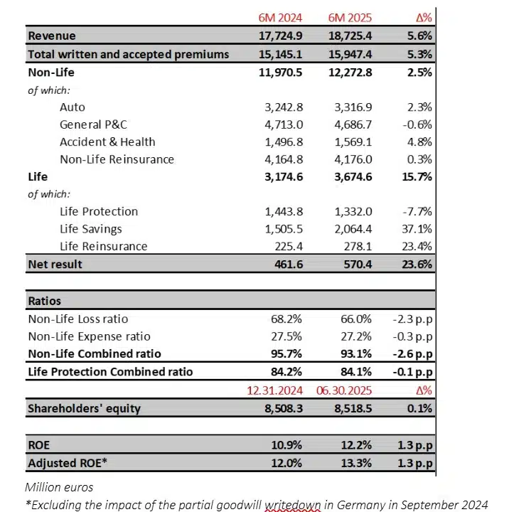 - General P&C posts a combined ratio of 95.3% (+0.4 p.p.).