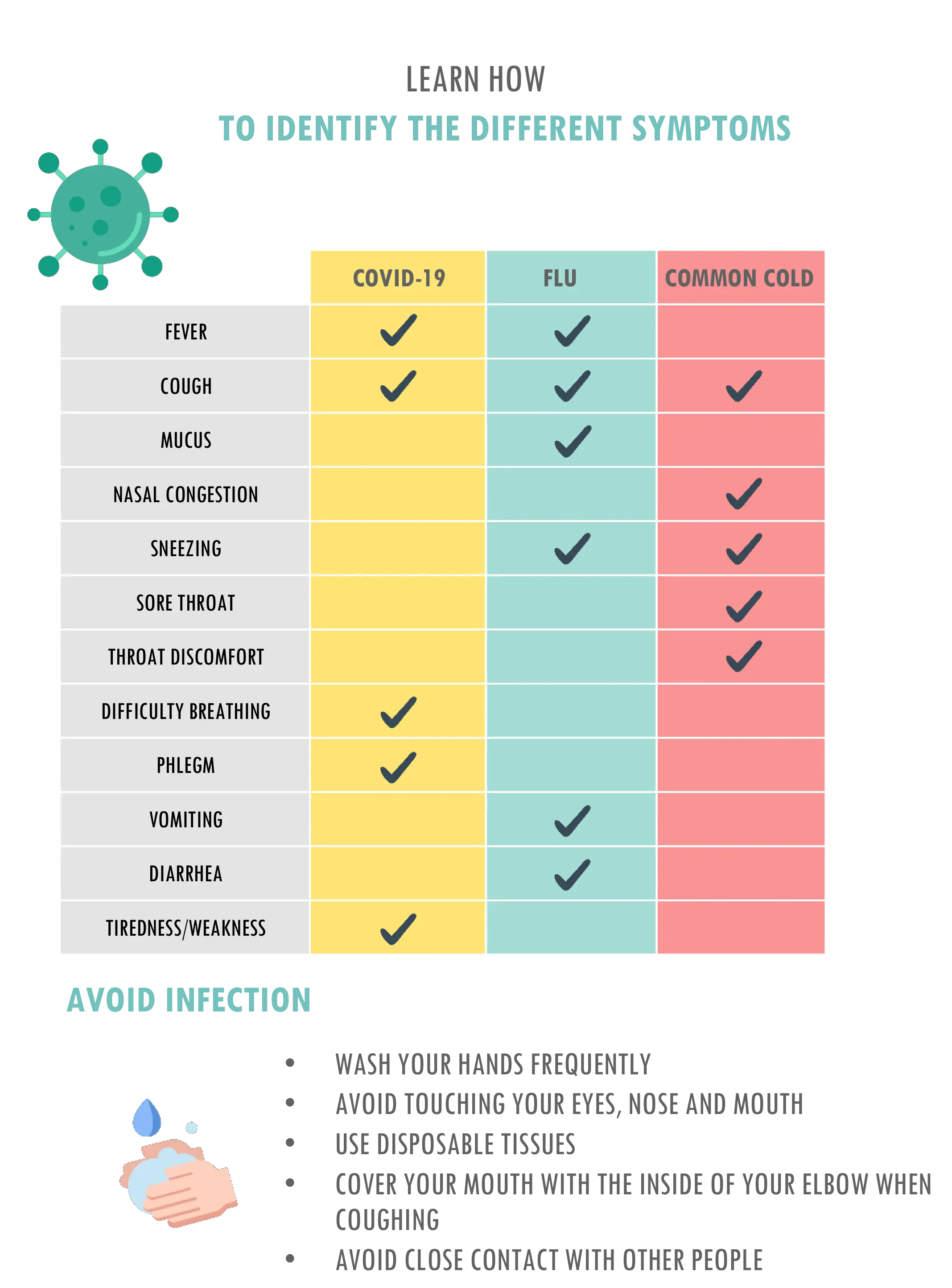 Use this infographic to differentiate the symptoms of COVID-19 from similar symptoms caused by other infections