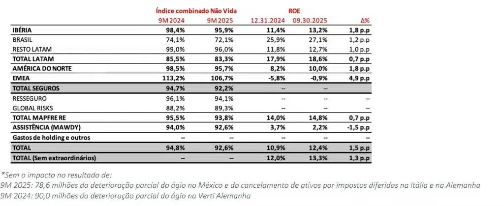 - Turquia e Malta seguiram contribuindo positivamente, enquanto a Alemanha e a Itália reduziram as perdas de maneira significativa, melhorando o índice combinado da região para 106,7% (113,2% em 9M 2024) e o resultado para 7 milhões (-19 milhões em 9M 2024).