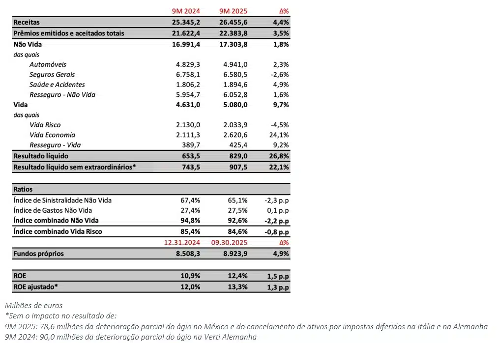 - As receitas operacionais, que incluem os prêmios e as receitas por serviços, alcançaram 354 milhões e a unidade apresentou um lucro líquido de 3 milhões de euros, com uma melhoria de 1,4 p.p. no índice combinado até 92,6%.